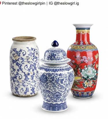 When I began curating this vase edit, I kept returning to this inner lesson. Shape equals mood. Curves calm. Strong silhouettes energize. Textures warm. Heritage patterns ground. With each piece I chose, I wanted it to feel like a small emotional shift, the kind that makes you pause for a moment and breathe deeper. Each piece below is part of a considered home — objects chosen not to decorate, but to support how a room feels.